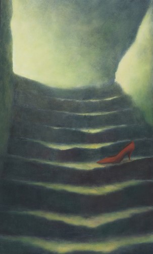 Treppe mit rotem Schuh